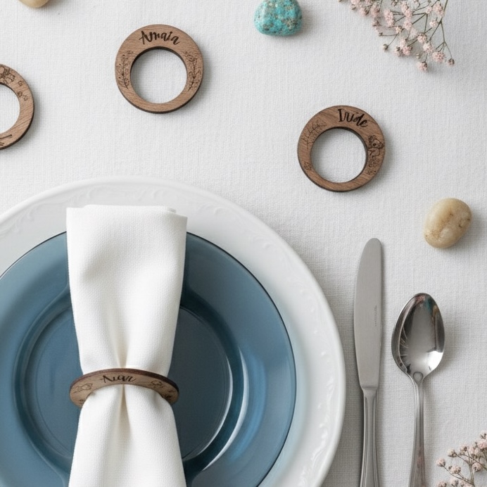 Este servilletero de madera contrachapada es un detalle práctico y bonito para vestir la mesa, tanto en el día a día como en ocasiones especiales. Su diseño grabado aporta un toque natural y, al añadir el nombre, se convierte en un elemento único ideal para comidas familiares, mesas de Navidad, celebraciones, bodas como marca sitios, o cualquier evento en el que quieras sorprender con un detalle cuidado.