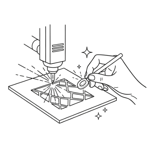 Combinamos la tecnología del grabado láser con el toque humano de los acabados manuales. Lo mejor de dos mundos.