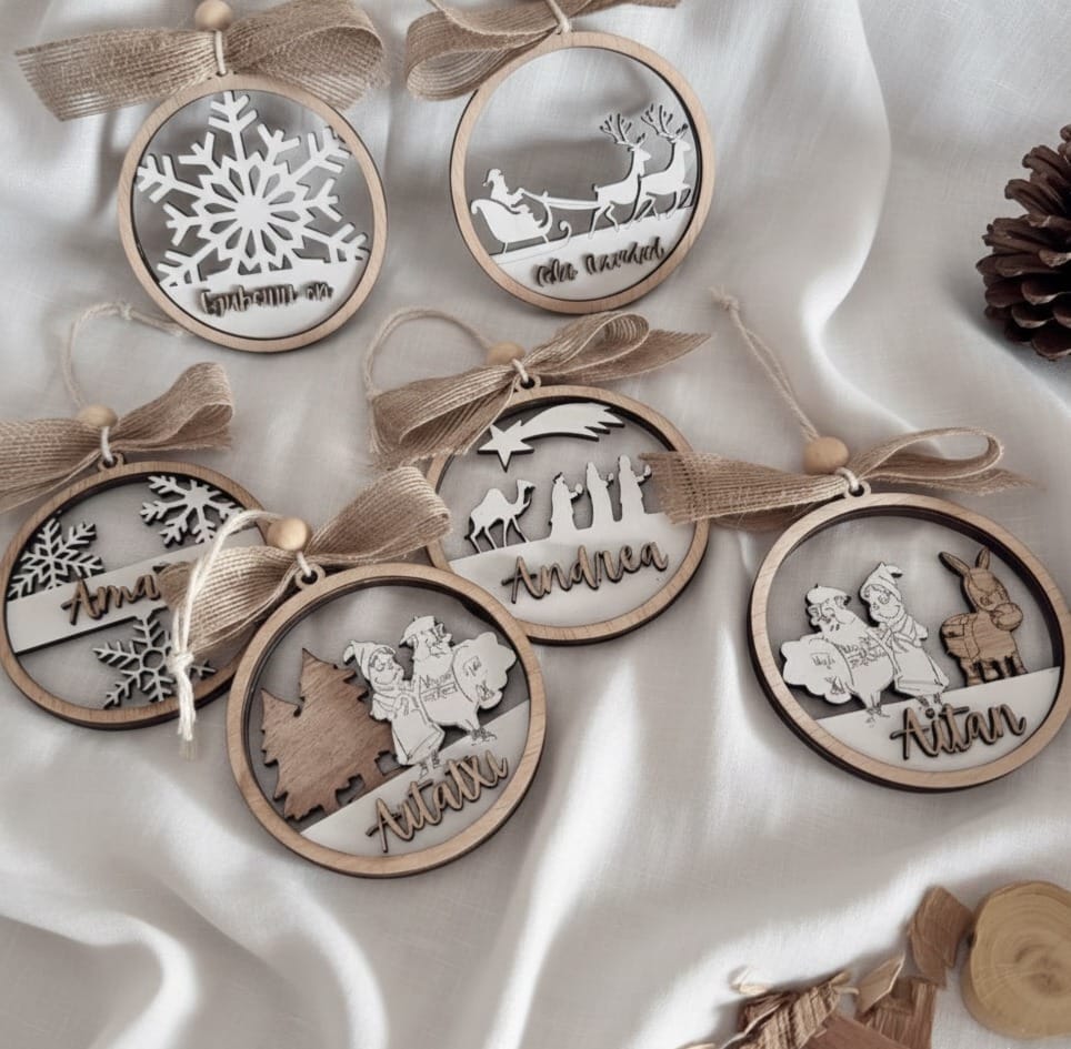 Navidad: Bolas únicas para el árbol con nombres, fechas o mensajes especiales.