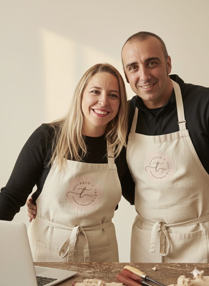 Somos Amaia (la de los detalles y las presentaciones bonitas) y Jagoba (el que da forma a cada pieza.). Entre los dos diseñamos y damos vida a todo con calma, cariño…
